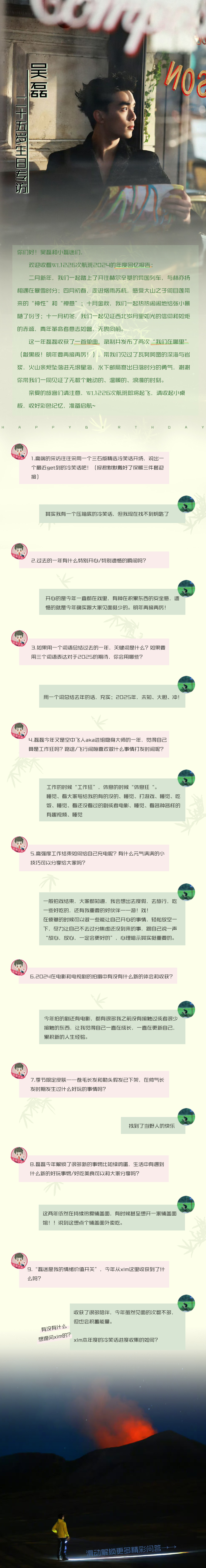 Wu Lei: The happiest part of this year was spending most of it on set, which gave me a sense of security as I felt like I was accumulating experience. The regret is that I didn’t get to meet everyone as much as I’d have liked. I’ll work harder next year!